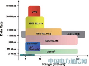 根據(jù)不同的頻率、目標(biāo)數(shù)據(jù)速率、距離,以及互操作性的理想水平,新出現(xiàn)了幾種工作在ISM頻率空間中的標(biāo)準(zhǔn)。圖1顯示了無線工程師進(jìn)行產(chǎn)品開發(fā)時(shí)最常使用的一些標(biāo)準(zhǔn)。