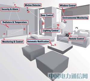 圖3顯示了家庭環(huán)境中應(yīng)用的一個(gè)WSN。在這種網(wǎng)絡(luò)中,我們可以觀察到不同類型的傳感器,例如,運(yùn)動(dòng)檢測(cè)器、散熱器、溫度監(jiān)控,等等。