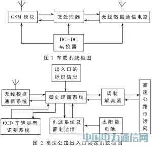 系統主要由兩大部分構成:一是車載系統,其結構框圖如圖1所示;二是高速公路入口處的固定基站和出口基站系統,其結構框圖如圖2所示。