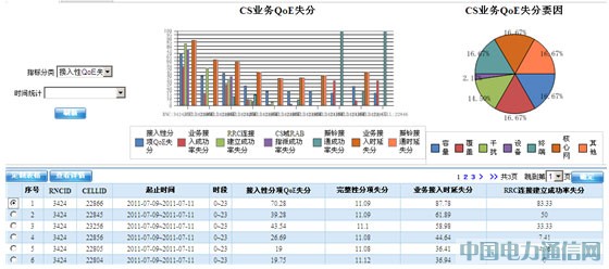 - 失分要因分析——將失分的各要因歸結為設備、覆蓋、干擾、容量、終端、核心網和其它。以指導用戶進行有針對性地進行網絡優化,提升用戶感知,鞏固移動核心競爭力。