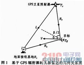 基于GPS輻射源的無源雷達(dá)的幾何關(guān)系如圖1所示。