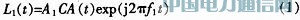 其中,CA(t)為C/A碼,f1=1575.42MHz,A1為幅度。忽略時間延遲和初始相位,L1(t)就是GPS直達(dá)接收機(jī)的信號模型;經(jīng)地面接收機(jī)混頻至中頻后表達(dá)式為(2)式: