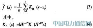 將(6)式代入上式,就可以得到一個通用的、用核符號表示的核密度估計式: