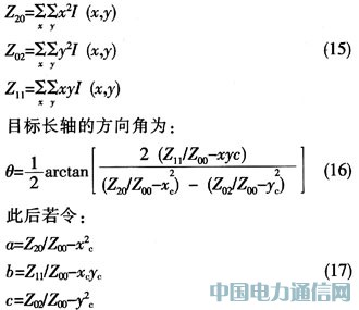 考慮到對稱性,S應取接近計算結果的奇數。這樣,通過計算二階矩,便可以得到被跟蹤目標的長軸、短軸和方向角。其二階矩為: