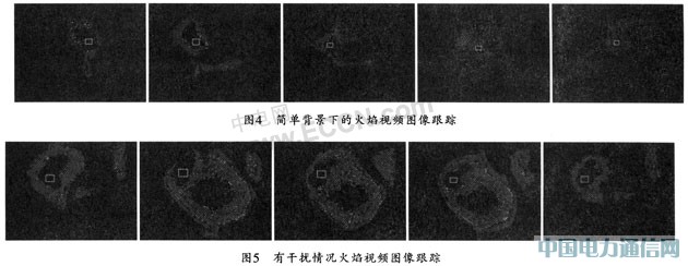 本文通過跟蹤背景較為簡單的火焰視頻圖像和有手電筒光干擾下的火焰視頻圖像來驗證此法的有效性,同時得出了如圖4和圖5所示的驗證結果圖。