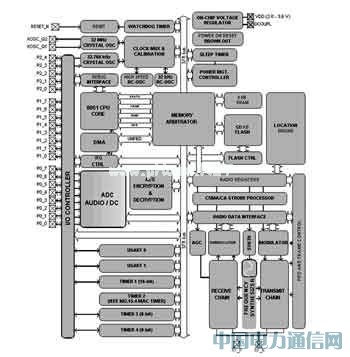 圖1是市售硅芯片解決方案中具有代表性的CC2431,這是一款真正的系統單芯片CMOS器件,不僅能夠發揮高效能,而且能夠滿足以2.4GHz ISM頻帶運作的IEEE 802.15.4/ZigBee無線標準對于低成本及低功耗的需求。由于2.4GHz ISM頻帶具備最大頻寬且全球通用,能夠促進全球市場的發展及應用設計的彈性,IEEE 802.15.4標準的2.4GHz PHY因而具有相當大的潛力。CC2431將高效能2.4GHz直接序列展頻(DSSS)無線射頻收發器結合廣受業界肯定的精巧型高效率8051微控制器、8KB RAM、128KB嵌入式閃存,以及其他實用的支持功能。其中一項是強大的RSSI定位引擎,適用于低功耗ZigBee無線傳感器網絡應用,例如,資產追蹤、病患監控、庫存控制、保全及試行網絡。芯片內建定位引擎的一項主要功能是分布算法,例如,在各個節點進行位置計算。由于過程中只傳輸計算的位置,而非進行計算所使用的數據,因此在節點進行位置計算能夠減少集中式運算法會出現的網絡流量及通信延遲。