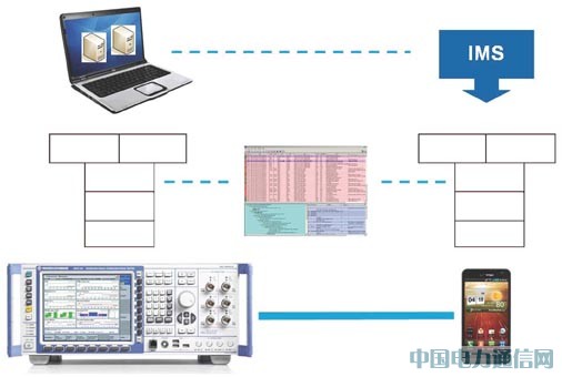 為了保證不同解決方案所設計的功能和性能,在網絡內實際使用期間仍然具備可用性,必須在實驗室內進行一系列測試。圖4所示測試設置可用于測試功能。該例中的測試儀器為羅德與施瓦茨公司的R&S?CMW500,它可以仿真測試所需要的所有移動網絡功能。除了LTE之外,它還包括各種2代和3代移動無線電技術(含GSM,UMTS和cdma2000?)。