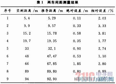 為了驗證單目視覺測距準確性,在市內道路上采集了前車與本車距離從5~100 m的一組圖像。對采集的圖像進行處理后,根據公式推導出本車與前車距離以及實際距離見表1。表中數據顯示,單目視覺測距的相對誤差都在5%以內,可以滿足實際工作中測距告警的需要。