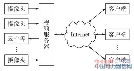 如圖1 所示,該系統由視頻采集端( 攝像頭),視頻服務器以及監控客戶端等構成。
