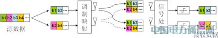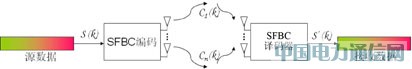 LTE采用的SFBC技術對編碼矩陣進行了改進,能保證在有天線損壞的情況下也可以正常傳輸,傳輸數據更為簡單,圖1為SFBC發送端基本框圖。
