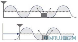 之所以要使用天線分集算法或多極天線,是因為環境因素能夠影響通信范圍和鏈路可靠性。主要包括三種情況:多徑衰落效應、天線極化效應、無線RF發射器或接收器移動。使用天線分集算法,就是提高天線位于一個強信號中的可能性。圖4中演示了多徑衰弱效應,假設接收器不動、發射器移動,上圖表示接收器在左側的天線可以接收到較強的信號,而右邊的天線接收不到強信號。下圖表示發射器發生移動,此時接收器的左側天線接收不到強信號,而右側天線則可以接收到強信號。很顯然,使用多極天線或天線分集算法,保證有一個天線可以接收到較強的信號,從而確保了鏈路的可靠性。