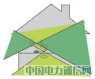 天線分集算法是如何抑制天線極化和方向性效應的呢?圖5中,左圖中黃綠部分表示使用一個天線時的通信覆蓋范圍,右圖中的黃綠色區域表示天線與左圖中的天線方向成90度放置時的通信覆蓋范圍。可以看到,使用一個天線時,不管天線放置的方向如何,都有很大的未覆蓋范圍。而從圖6可以看出,使用兩個天線和天線分集算法時,通信覆蓋范圍大為增加,黃綠色和綠色區域都是通信覆蓋范圍,實際上是兩個成90度放置的天線的通信覆蓋范圍的疊加。通過這圖5和圖6的對照,我們可以看出,使用天線分集算法可以減弱方向極化和方向性效應的影響,擴展通信范圍。