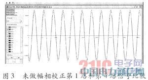 由圖像觀察可知,兩路信號在幅值和相位上大體一致。信號之間的不同步是由于電路板固有因素造成,如布線、芯片之間的差異等。因為算法對數據同步有嚴格要求,所以對這兩路信號做幅相校正。