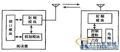 基本的RFID系統包括閱讀器和射頻卡(應答器)2部分。閱讀器可以是只讀或讀寫裝置,通常包含射頻模塊(發射和接收)、控制單元及與射頻卡耦合的元件(電感線圈或天線等),此外還應有連接上位機的通信接口以便將所獲得的數據傳給上位機。