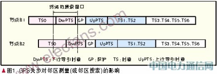 GPS失步造成基站間的GPS定時(shí)偏差過大,從TD-SCDMA的幀結(jié)構(gòu)、終端和系統(tǒng)的實(shí)現(xiàn)方式分析,GPS失步主要在3個(gè)方面造成對(duì)系統(tǒng)的影響。