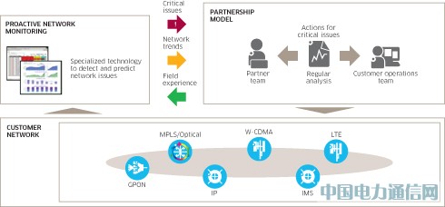 運營商已經(jīng)擁有預測和預防移動網(wǎng)絡(luò)問題所需的網(wǎng)絡(luò)數(shù)據(jù)。但通常,他們擁有的對移動網(wǎng)絡(luò)所產(chǎn)生的海量警報、性能監(jiān)測和事件信息進行過濾和分析的資源很有限。潛在的影響服務(wù)的問題可能被淹沒在海量數(shù)據(jù)中。一個提供主動服務(wù)的合作伙伴可以在這些問題影響服務(wù)之前幫助運營商發(fā)現(xiàn)并將其解決掉。