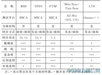 無線傳感器網絡的最常見的幾種同步算法的性能比較如表1所列。