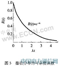 傳感器測試設(shè)備的可靠性是時(shí)間的函數(shù),隨著時(shí)間的推移而不斷降低,即使元器件經(jīng)過篩選和整機(jī)經(jīng)過老煉及維修,設(shè)備在偶然失效區(qū)工作的情況下,這一段時(shí)間內(nèi)的失效率是一個(gè)常數(shù)。但是,設(shè)備隨時(shí)間的分布規(guī)律卻符合圖5所示的規(guī)律,即:使用的時(shí)間越長,測試設(shè)備的可靠性就越低。