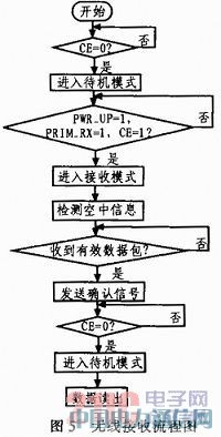 nRF24L01的接收模式的程序流程圖如圖5所示。