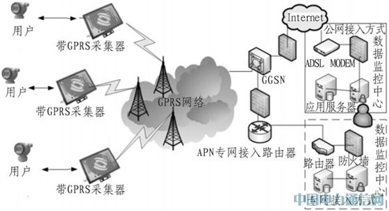現代家庭中水、電、氣表俗稱“三表”。傳統的人戶抄表不僅給用戶帶來了不便,而且占用大量的人力資源,造成收費難的問題;新興的IC卡技術,較為徹底地解決了以上問題,但對用戶買“水、電、氣”來說還不甚便利,同時與用戶的使用信息也無法得到實時溝通,因此智能抄表和安全監控成為行業發展的方向。要進行智能抄表和安全監控就必須建造傳輸數據的網絡。傳統的數據傳輸主要有數傳電臺、電話撥號、衛星通訊輔設專線等,這些傳輸方式存在覆蓋范圍小、實時性差、投資及運行費用高等問題。GPRS技術及互聯網Internet技術的發展,為工業監控、遙測遙控領域的數據傳輸及數據網絡化管理提供了廣闊的平臺。