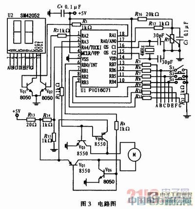 圖3是控制閥的電路圖。系統使用低壓直流電源,用PIC16C71單片機做控制,通過程序控制實現各項功能。