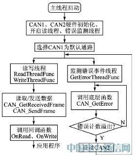 ARM9的開發平臺已將CAN驅動嵌入,根據CAN2.0協議,可以直接完成物理層和數據鏈路層的通信,因此,在WinCE操作系統下,實現CANopen通信,解析通信對象,調用應用程序,完成整個上位系統的CANopen通信。