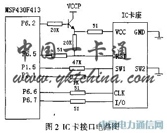 (2)IC卡接口。從節約成本的角度出發,IC卡接口采用的是復旦微電子股份有限公司出品的FM4442存儲卡。它采用0.6微米CMOS EEPROM工藝,內部有256字節用戶存儲器,32字節寫保護區及3字節編程安全認證碼。外圍接口遵循IS07816協議標準(同步傳輸)。充分利用其內外部資源,用戶存儲器存儲用戶水量;保護存儲區和加密存儲器的編程可實現IC的個性化設計,提高使用的安全陛。它與單片機的接口電路如圖2所示: