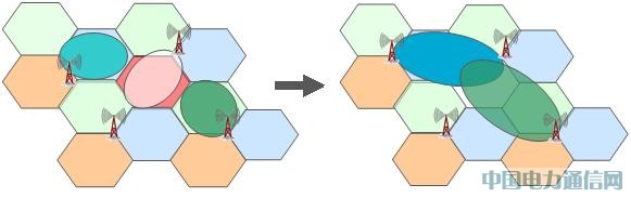 一旦出現退服,OSS會協調問題基站周邊基站的扇區來補償退服的無線覆蓋。如下圖,參與補償的基站會調整下行發射功率、天線傾角等來補償退服區域,甚至調低上行信號接收門限變相地擴大該扇區覆蓋以接入更多退服區域的終端。當然,由于扇區的調整,會造成鄰區關系變化、切換邊界變化、干擾增加,這些就需要OSS提供的其他功能ANR、MRO、ICIC來聯合優化。