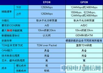 XPON和GPON的比較