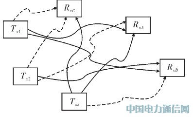由于差分跳頻與傳統(tǒng)跳頻的原理有很大差別,造成其組網(wǎng)性能也有很大不同。例如,傳統(tǒng)跳頻電臺(tái)組網(wǎng)時(shí),相同頻率造成頻率碰撞,形成多址干擾,而頻率不同時(shí),不構(gòu)成多址干擾;對(duì)于差分跳頻電臺(tái),不同頻率可能會(huì)造成接收方數(shù)據(jù)的誤判,從而形成多址十?dāng)_;頻率相同時(shí),如果削弱有效頻率的幅度,則形成多址干擾,如果加強(qiáng)頻率的幅度,則不形成多址干擾,與兩個(gè)頻率之間的相位有關(guān)。