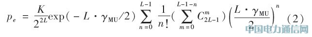這樣就可以得到高斯白噪聲信道條件下的總用戶(hù)數(shù)為N的DFH多用戶(hù)系統(tǒng)的理論誤碼率為