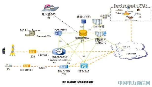 智能管道實現方案比較多,圖3是一個典型的基于PCC架構的端到端融合智能管道解決方案。