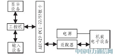 將AEC429-PCI-22/S5接口卡的每個發送通道和接收通道分別作為總線數據仿真系統的的模擬輸入及輸出端口,也可直接與相應的檢測設備相連進行總線數據通訊,按照ARINC429協議采用屏蔽雙絞電纜,利用特定的適配器,實現對機載電子設備的指令數據的模擬輸入及工作狀態數據和故障信息的查詢。由于不同的機載電子設備具有不同的通訊協議及硬件接口,故配合系統軟件設計,系統還根據不同設備的特點,設計了特定的適配器,以滿足多型設備總線數據發送、采集及故障診斷的需要。如圖3所示。