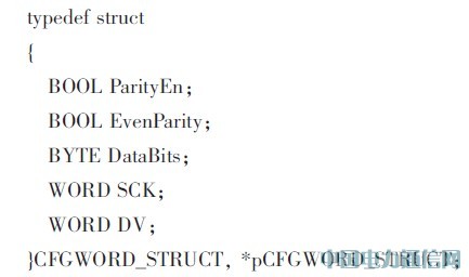 其中,ParityEn:校驗使能位(TRUE:使能校驗;FALSE:校驗禁止);EvenParity:校驗模式選擇 (TRUE:偶校驗;FALSE:奇校驗);DataBits:數據位長度,取值25或32;SCK:429半位采樣次數,取值范圍12~16;DV:模塊內部分頻設置寄存器,最大取值2047,不能為0.