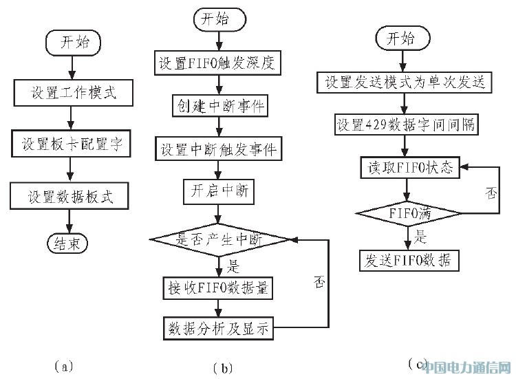 為保證各通道獨立控制,發送數據采用非定時方式,當發送按鈕按下即發送預設的總線數據。將板卡預置的函數AEC429C5_EnableTimerMode的入口參數Enable置為FALSE,即可進行非定時方式的數據發送。如圖4(c)所示為板卡非定時發送數據子程序框圖。