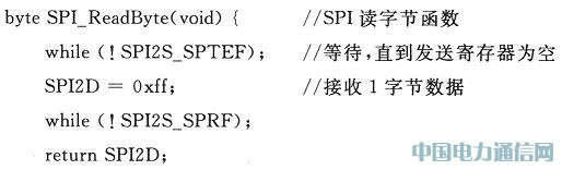 底層的SPI通信是實現最終讀寫的關鍵。由于MCF51QE128自帶SPI硬件接口,因此只需要讀寫SPI數據寄存器的值。這里自定了byte、word和dword三種數據類型,分別對應于8位、16位和32位數據。代碼如下: