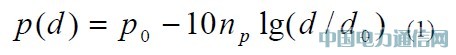 式(1)中,d 是發射機和接收機之間的距離, d0 是參考距離; np 是信道衰減指數;一般取值2-4; p0 是距離發射機d 0 處的信號強度;P(d)是距離發射機d 處的信號強度; p0 可以通過經驗得出,或者從硬件規范定義得到。由此方程可以通過信號強度P(d)求出d 。