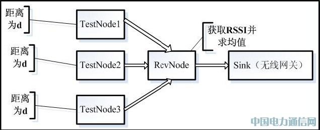 因此,理想狀態下RSSI 值和距離的關系不適用本系統。本文必須找到RSSI 值和距離在實驗環境下的函數關系,這是本文所作工作的一個重點也是難點。通過研究分析,本文設計了獲取RSSI 和距離在實驗環境下關系的實驗,實驗方案如圖1 所示。