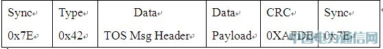 Sync 是一個數據幀的起始和結束標志符,用0x7E 來表示該標志符。緊跟在起始Sync后面的是Type標志符。CRC用來表示冗余校驗碼,其中,參與冗余校驗的字段為TOS MsgHeader 和Payload,這兩個字段存放的是網關收到的一個傳感器節點發出的完整的路由包。