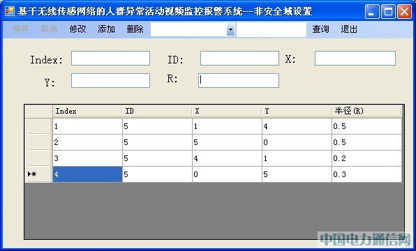 非安全域設置模塊:該模塊主要負責非安全域的設置。非安全域的正確設置對系統的自動報警功能及系統的可靠性起著極其重要的作用。所以只有擁有設置權限的用戶才能進行非安全域的設置。如果被監控的人員出現在非安全區域,系統將觸發警報。非安全域即定義一個非安全域的中心和非安全域的半徑,所有處在該非安全域中的點將觸發報警功能。該模塊允許擁有權限的用戶根據實際需要對非安全域進行修改,添加,刪除和查詢等操作。