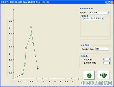 歷史回放模塊:該模塊主要根據用戶的設置回放移動節點的歷史軌跡。用戶根據自己的要求回放具體時間移動節點的軌跡信息,如回放一天、一天的一段時間;幾天、幾天里面的一段時間或者一個精確時間的被監控人員的軌跡信息。此外,該模塊提供設置回放周期功能,用戶根據自己的需求設置每次回放的移動節點位置信息的個數和回放周期,系統將反饋給用戶查詢的時間段內數據庫中所有記錄的條數,用戶通過系統能清楚地知道需要回放的記錄條數以及待回放的記錄條數。