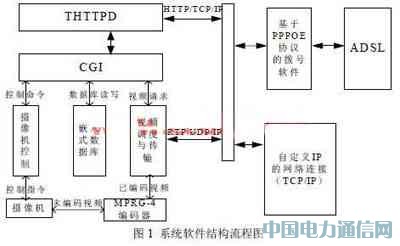 在本系統中,模擬視頻數據經過AD,采樣等預處理進入支持MPEG4編碼的ASIC芯片壓縮后,打包發送的任務由Thttpd完成。