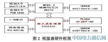 該模塊的質量直接關系到系統的圖像和聲音以及傳輸質量,是系統硬件的重要部件之一。因此模塊選用了 VW2010,它是 VWEB公司開發的實時 MPEG4音視頻壓縮 /解壓縮芯片((Encoder/Decoder),該芯片內集成有 3個信號處理 /控制單元,包括一個視頻編碼 (壓縮)器、一個視頻解碼 (解壓)器和一個片內 CPU(內部擴展一個音頻編碼 DSP C Digital Signal Processors、一個音頻解碼 DSP、一個多路復合單元和一個多路解復合單元 ):具有可編程、高性能和低功耗等特點。