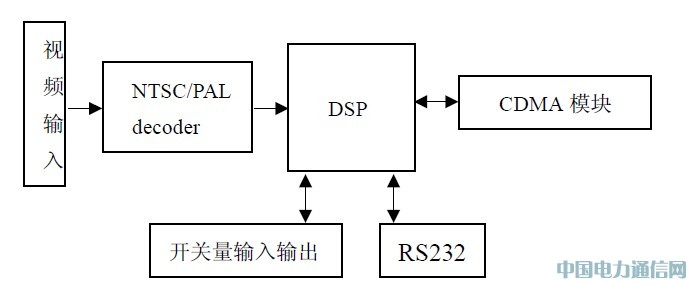 無線視頻傳輸模塊選用了北京百目公司的極目 728M - CDMA 無線視頻傳輸器,可通過廠家提供的SDK 進(jìn)行二次開發(fā),十分方便。該模塊的功能結(jié)構(gòu)圖如圖2 所示。