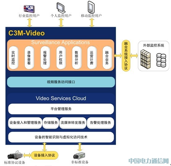 C3M-VIDEO監控平臺基于云計算技術,構建視頻監控管理平臺應具備的功能和業務流程,通過在聯網監控系統內搭建彈性的“云”,可平滑擴展系統規模,保障正常穩定地提供監控服務。單級平臺能達到10000路以上的規模,通過級聯或組建更大的云,可滿足更大規模的需求。