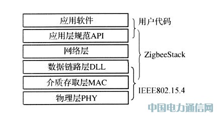 如圖1 為Zigbee協議架構。Zigbee 是在IEEE802.15.4基礎上開發的應用于無線傳感器網絡上的通信協議。它屏蔽了IEEE 802.15.4協議層的一些復雜的細節問題,使開發人員能夠在短時間內開發出產品。系統采用Zigbee協議進行設計開發。