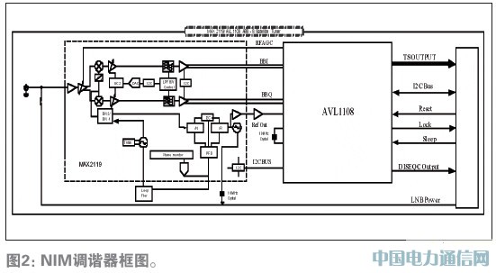 根據“十一五”規劃建設目標,我國將全面實現20戶以上共71.66萬個已通電自然村的“村村通”廣播電視。2008年6月,隨著中星9號的順利升空,我國的“村村通”工程進入直播衛星時代。根據國家廣電總局的規劃,在目前已經開通48套電視節目的基礎上,未來還將開展多種增值服務,如高清、推送視頻點播等內容,并由此推動相關的產品制造、服務行業的發展與產業升級,形成上千億元的市場規模,為拉動內需,促進經濟發展,發揮積極作用。針對該市場的巨大需求,Maxim推出MAX2119,本文介紹了基于Maxim MAX2119和中天聯科AVL1108解調芯片的直播星NIM調諧器的參考設計。