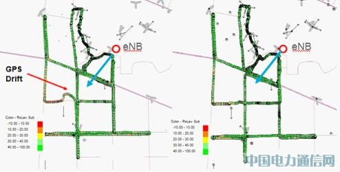 圖2 GSM1800共站前(左圖)后(右圖)覆蓋對(duì)比