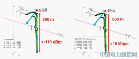 圖3 基于GSM1800共站的TD-LTE性能(左圖為RSRP,右圖為下行速率)