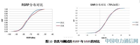 在保證了仿真建模與測試匹配的前提下,即可進行仿真與測試的RSRP與SINR的對比,如圖10所示。從結果來看,LTE云規劃解決方案可以達到與測試較好的擬合程度。